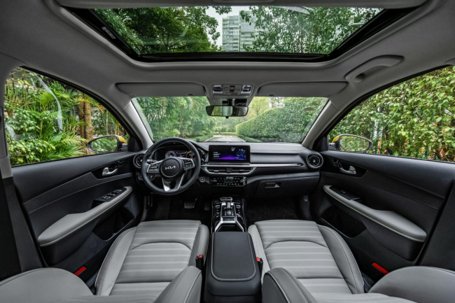 内饰方面,新K3搭载了10.25英寸炫彩仪表盘和10.25英寸智能显示屏、触控式自动空调、LCD可视换挡杆,科技氛围浓厚,配合大面积皮质材料,更是增加了车内的高级感和精致感。此外,新K3提供了黑色、黑红和黑灰3种内饰颜色,满足年轻消费者多样化需求。