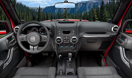 JEEP牧马人的内饰是这样的。